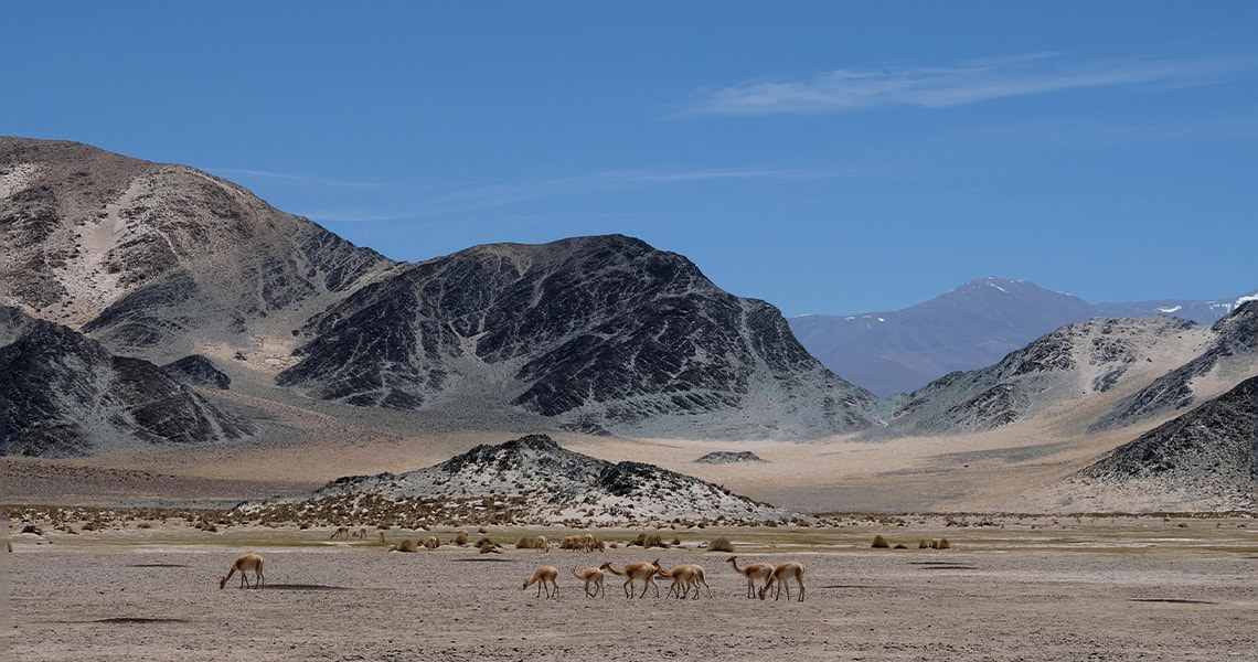 We rijden door de Altiplano, de hoogvlakte van de Andes. De voorgenomen tocht voert circa driehonderd kilometer over een gravelweg door een zeer onherbergzaam gebied. Halverwege is een mijn waar onder andere lithium wordt gewonnen. Behalve de mijnwerkers woont hier geen mens. De weg loopt op een hoogte van ruim 4000 m. Behalve gras groeit hier vrijwel niets. Regelmatig kom je de kleine kameelachtige vicuñas tegen; de mannetjes vaak alleen, de familie in een groep. Bij de Salar de Hombre Muerto is een kleine begraafplaats. Je vraagt je af wie hier zo van God en alle mensen verlaten zal liggen.